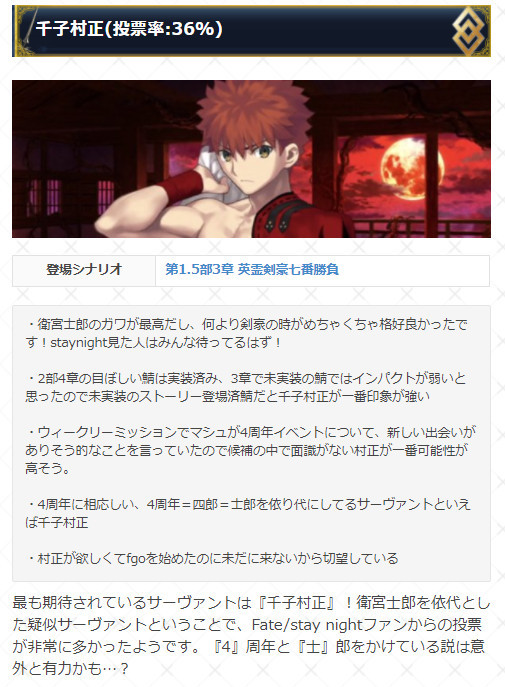 Fgo Gamewith4周年从者调查结果 那个男人票数最高
